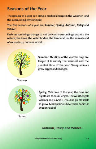 The Five seasons of a year are Summer, Spring, Autumn, Rainy and