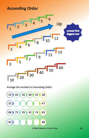 Ascending Order 6 5 4 Up 3 2 1 Lowest First Biggest Last 12 10 8 6 4 2 13 11 9 7 5 3 60 50 40 30 20 10 Arrange the numbers in Ascending Order - 33 43 35 40 47 38 33 47 88 73 55 42 74 83 42 88 All Rights Reserved. Acumen Today 35